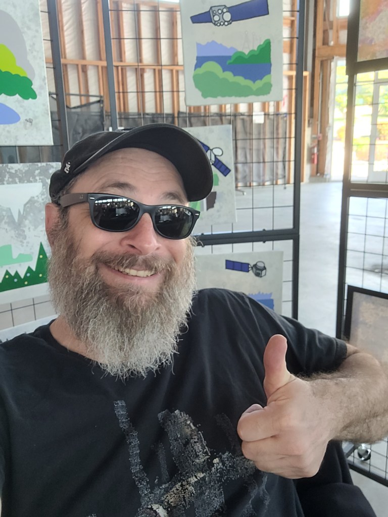 I think they’re making me do it, from their home in space. Unsure if this was imbedded into their programing or if this is an unforeseen consequence of some unrelated actions they carry out. These satellites must be disrupting my normal thought patterns, manipulating them – therefore manipulating my actions. Hasn’t been easy, what with the (low-grade serous ovarian cancer) my wife has in her beautiful human body (unsure why this occurred, as she is a gem of a gal and would never have caused harm to any component of either the natural or manufactured systems we inhabit). Decay is the day’s order. The renewal aspect of our natural world is now seen as a liability by too many. Will we survive? All humanity, my lovely wife, or I? In our shared, created system only money assists survival, planned this way by those who possess the item in abundance. We (my family) currently have little of this material. But YOU…you who have read these words, if you purchase this art you are not only providing for our survival you are also providing for OUR survival. Creating love helps! Buying art helps too.
